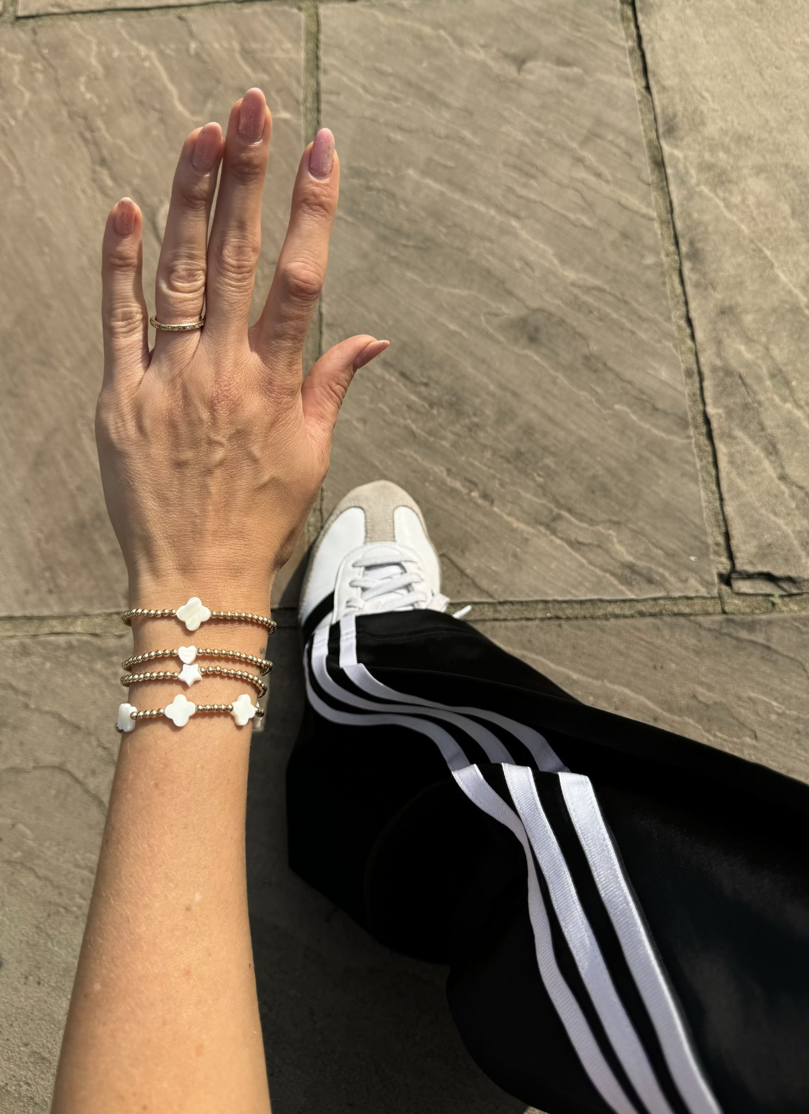 Always feel lucky and protected with our luxury 3mm handmade mother-of-pearl clover bracelet, available in 14ct gold-filled, rose gold-filled, and sterling silver beads. Or why not try a combination?